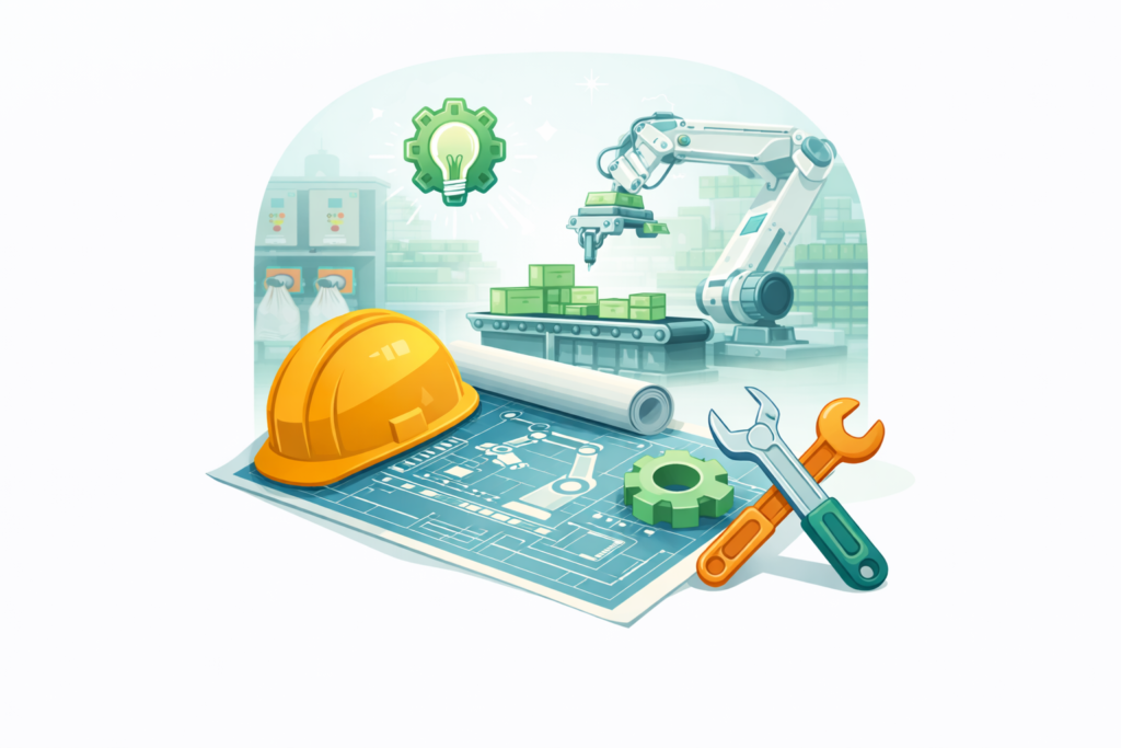 COMO TRABALHAMOS Passo 1 Entendimento do processo Analisamos o processo produtivo para compreender as necessidades reais da operação. Passo 2 Desenvolvimento da solução Projetamos sistemas que se integram ao espaço e ao fluxo da produção. Passo 3 Entrega e operação Acompanhamos a implementação para garantir que a solução funcione na prática. O QUE NOS DIFERENCIA Engenharia aplicada Desenvolvemos soluções baseadas em engenharia prática, pensadas para funcionar no dia a dia da operação industrial. Experiência em diferentes operações Atuação em diferentes segmentos, produtos e níveis de automação, permitindo soluções adequadas a cada realidade. Foco na operação real Sistemas desenvolvidos para serem eficientes, confiáveis e simples de operar, com foco em produtividade e segurança. FALAR COM UM ESPECIALISTA