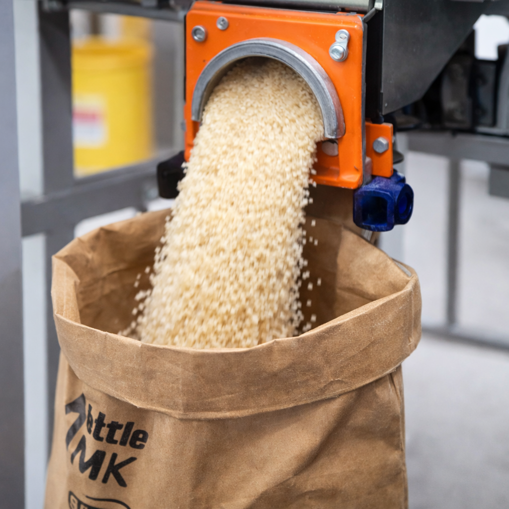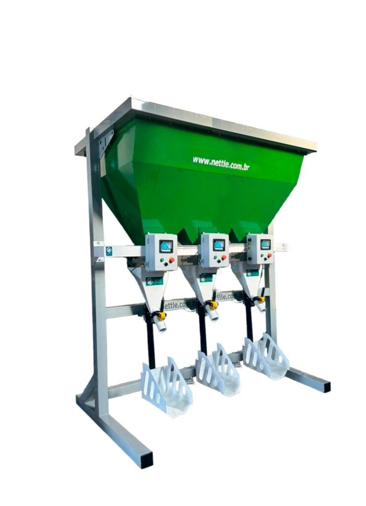 Alta produtividade no ensaque de grãos, sementes e insumos, com equipamentos robustos para operação contínua no campo e na indústria.